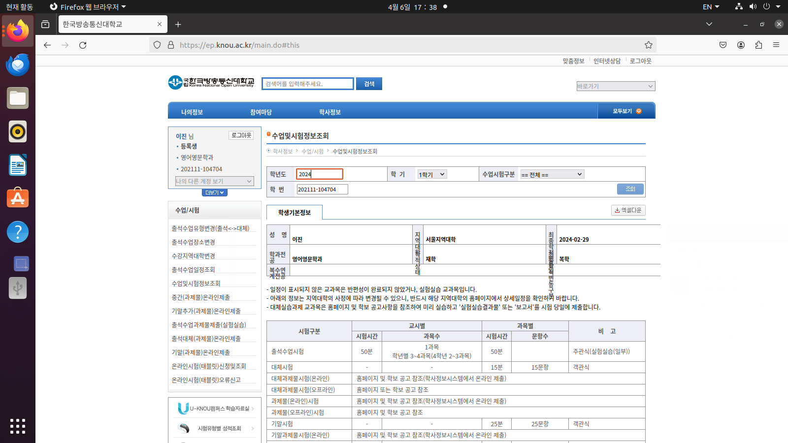 아래 사진 이외에도 여러 학사일정이 있다(컴퓨터 화면은 M.I.T에서 지원하는 우분트 OS의 screen-shot 이다)