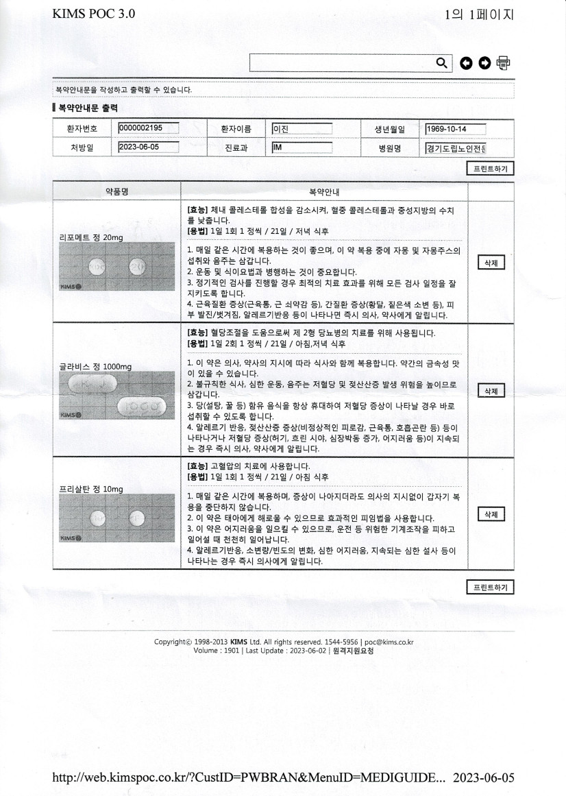 토요비젼새벽기도회 불참(사유:당뇨 혈당 수치 변화)아래 처방전 참고 할 것