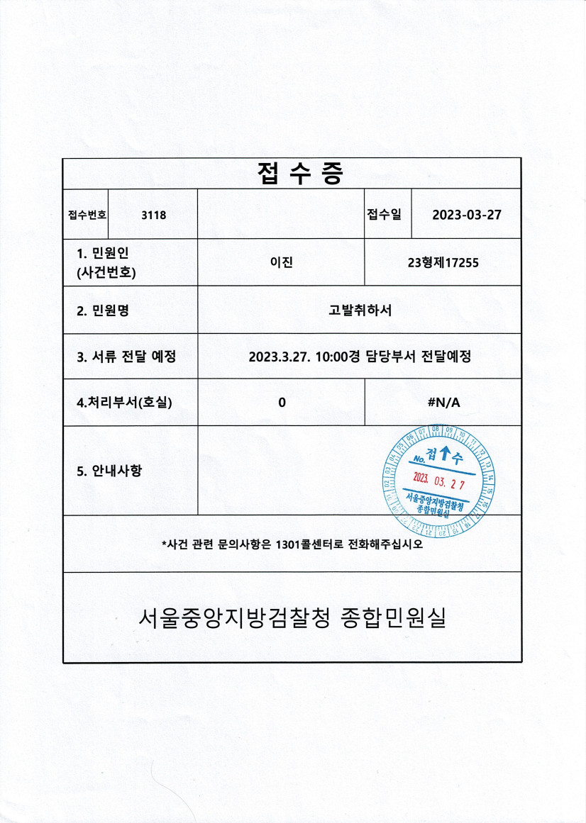 내가 교회에 있을때 핸드폰을 켜놨는데 대검찰청에서 문자메시지가 왔는데 검사님이 배정이 되었단다. 하나님이 자꾸만 나에게 회개하라고 하시길래 (요사이는 포르노도 않본다) 여러분이 알다시피 방배파출소에서 백석신학원에서 돈을 수수한 것에 대하여 서울중앙지방검찰청(대검)에 접수한 고발장을 취소했다. 그런데 ‘고발취하서’를 내가 가지고 있는데 무슨 소리야? 하고 집(Home-Office)에 와서 대검에 전화를 했더니 일단은 담당 검사님이 최종결정권이 있으니 기다리라고 어떤 여자분이 말씀하신다. 가만이 생각해보니 나도 자위대(나 야동 않본다)처럼 방어 준비를 해야 하겠기에 개인정보공개를 요구하기 위해서(뇌물수수 현장을 CCTV로 녹취한것) 백석 신학원과 통화하려고 10통 넘게 걸어댔는데 또 백석 신학원에서는 내가 업무방해를 했다고 남태령 파출소에 신고한 모양이다. 2명인데 어떤 머저리 같은 경찰관이 고발취하서를 왜 제출했냐고 물어본다. 이 개자식이 누구를 머저리로 보는지 神의 뜻에 따라서 자존심 굽히고 제출한건데 다른 경찰관이 다시는 백석에 전화하지 말란다. 최00검사님과 통화를 했는데 내가 고발취하서를 제출했으니까 없는 일로 하겠다는 취지로 말씀하신다. 백석 신학원이 학교냐? 일단 학력고사(수능)보고 들어가라. 또 돈쳐먹였냐?
