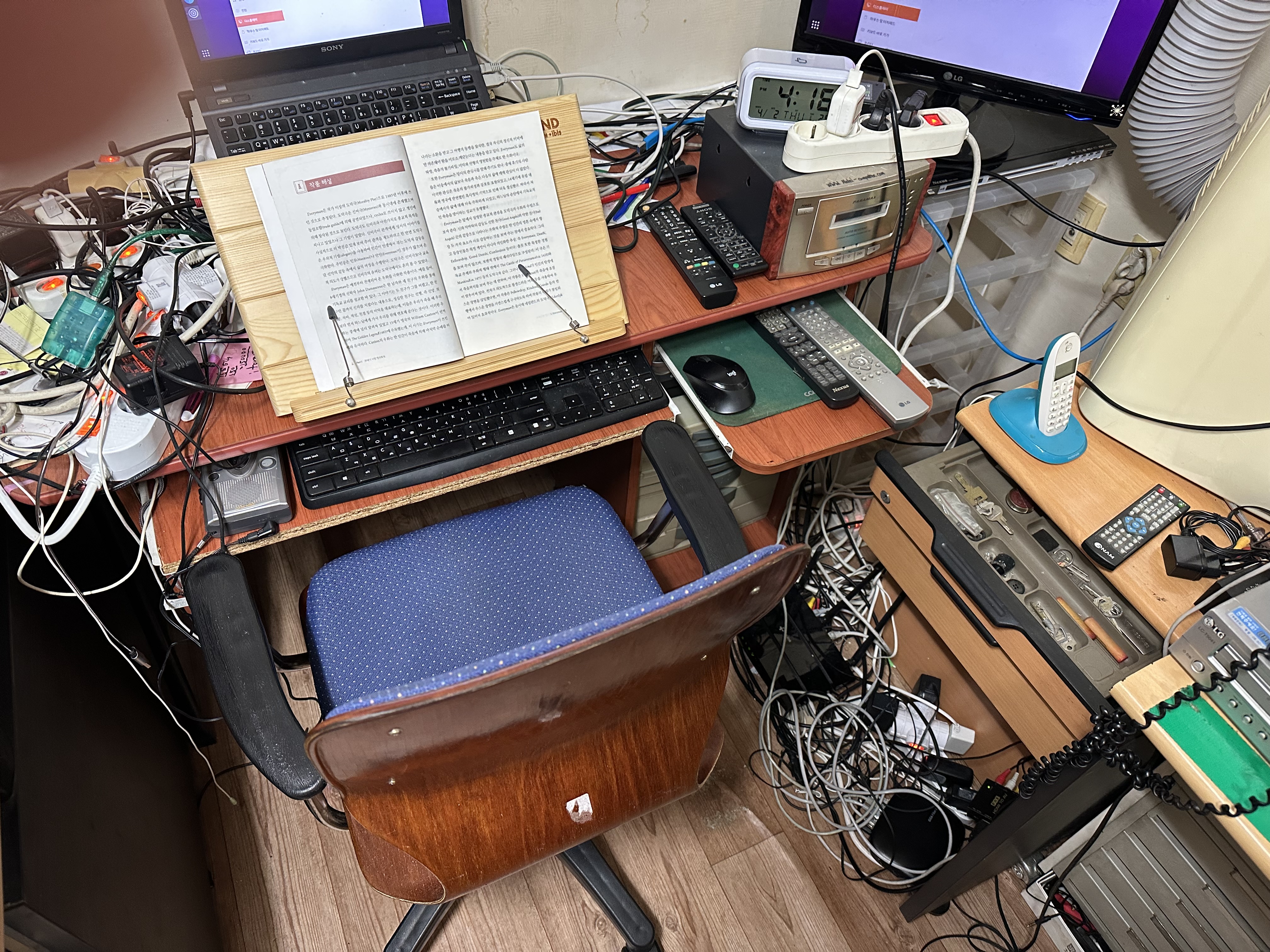 아버지께서 중국어를 배워두라고 하시는데 교회에서 수강료가 15만원이다. 십일조까지 하면 한달에 30만원이 넘는데 일단 15만원내면 영어예배처럼 눈치 보일일도 없을것 같다. 위의 책상위의 독서대를 매입했는데 32,000원 짜리이다. 그리고 MADE IN CHINA이다. 트럼프가 아무리 지랄을해도 중국인구가 14억에 육박하고 지상전은 말도 안된다. 나는 되도록이면 중국제품을 사려고 한다. 내입 더럽힐 것도 없고 중국은 만만한 나라가 아니다. 호르무즈 해협에서 이란이 통과료를 위완화(중국 기축통화)도 받을 모양인데 전쟁이 길어질 것 같다…