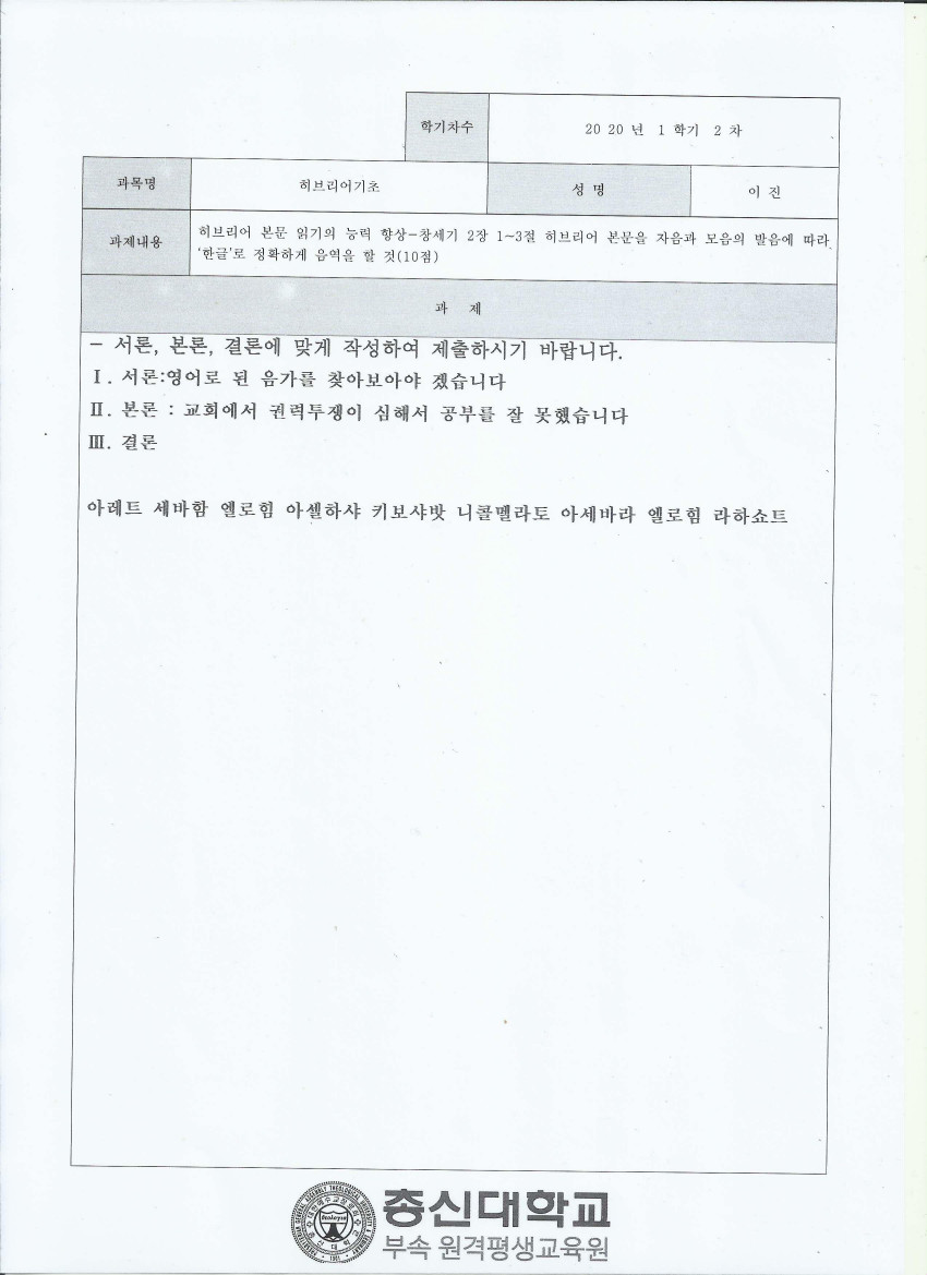 아, <부부의 세계>를 볼 것이냐 히브리어를 공부할 것이냐 그것이 문제로다…